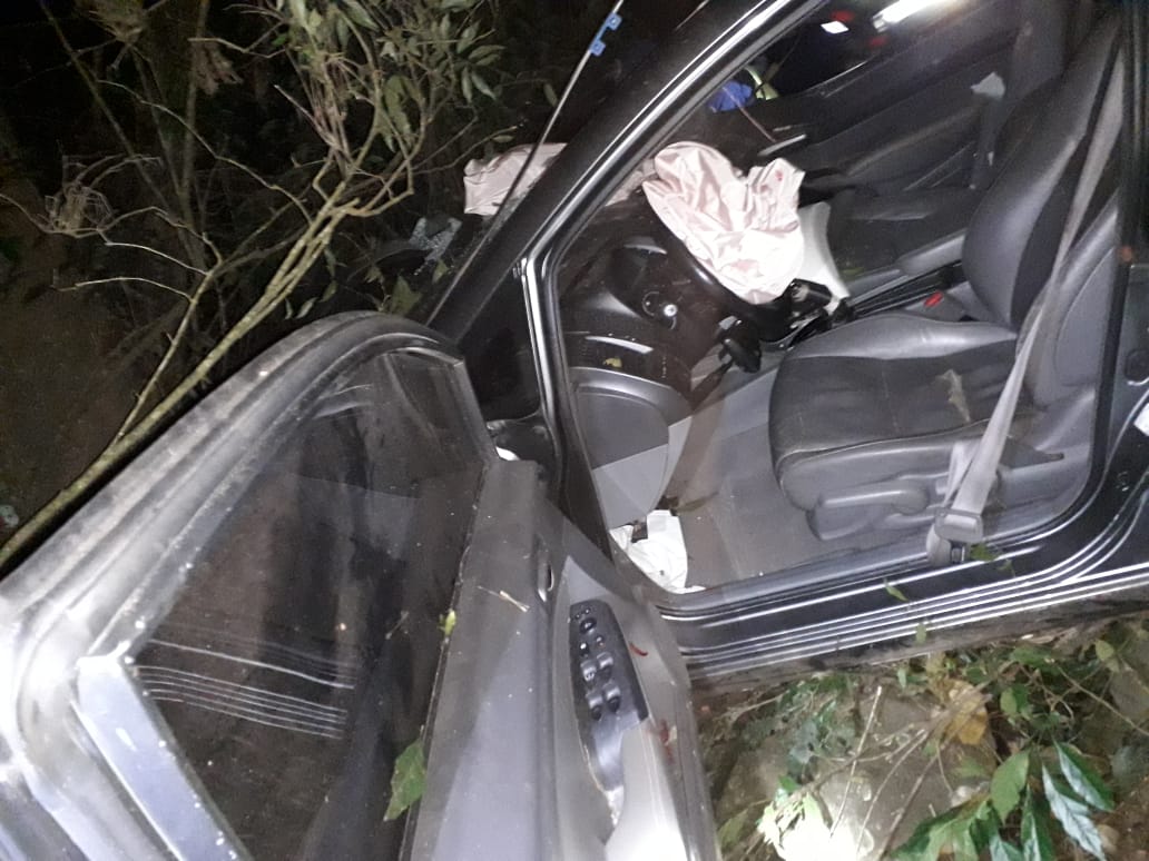 O acidente envolveu um Honda/Civic, de Xanxerê e um carreta, de Xaxim. Conforme testemunhas, o carro passou por baixo da carreta, desceu um barranco de 10 metros e bateu contra uma árvore.